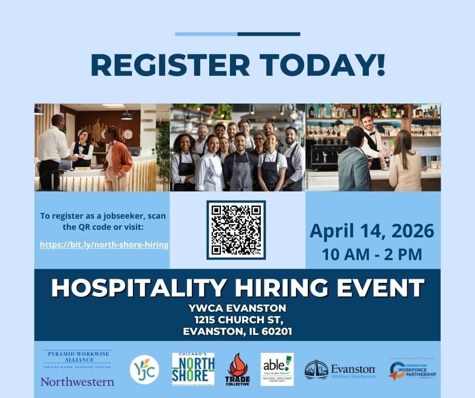 Hospitality Hiring Event for North Shore employers Pyramid WorkWise Alliance, in partnership the Chicago's Northshore Convention & Visitor's Bureau, City of Evanston, National Able, Northwestern University, Trade Collective, and Youth Job Center, invite you to participate in the North Shore... |